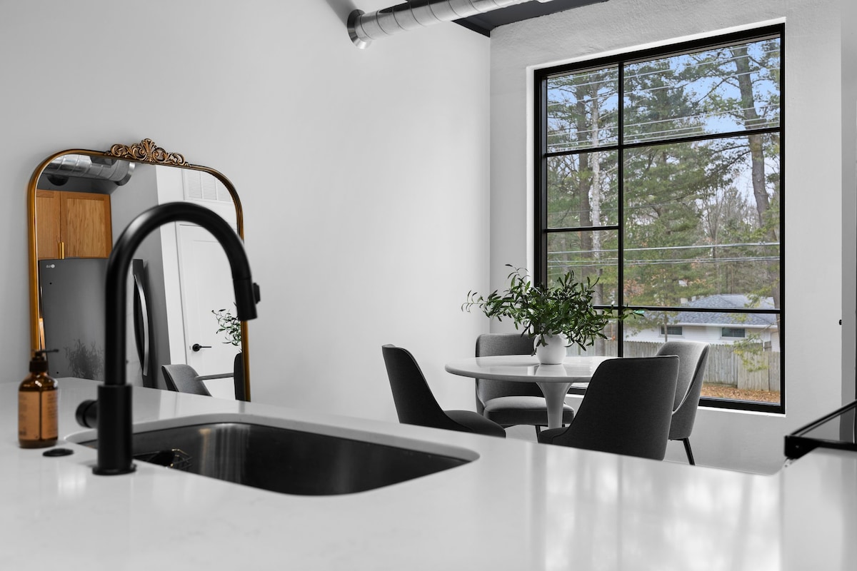 Pis preciós de 2 habitacions i 2 banys amb pati privat a "the Lofts at 58", situat al cor de The Village a Grand Traverse Commons. Gaudeix de restaurants informals i excel·lents, botigues, rutes per caminar i fer senderisme, cerveseries i cellers just a fora de la teva porta! Aquest és un dels llocs històrics més grans dels Estats Units i les visites són interessants i divertides! El districte del centre de Traverse City està a només un quilòmetre i mig de distància on pots gaudir de les platges, les postes de sol a la badia, les botigues, els restaurants, els teatres i molt més!