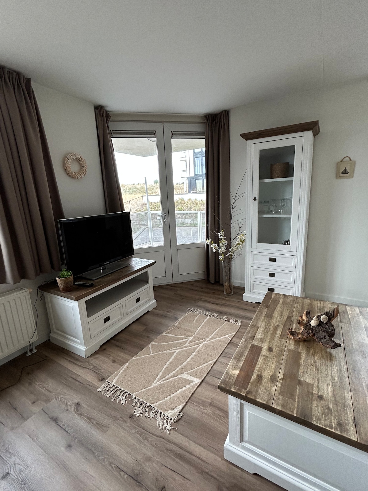 Pis completament nou i modern (> 100 m2 i terrassa de 30 m2) amb 2 dormitoris i 1 bany, just darrere de les dunes. Apte per a parelles i famílies; idealment amb 4 i un màxim de 6 persones. Dormitori principal: llit «queen size» de Swiss Sense. Habitació d'hostes: llit doble: 2 llits dobles complets d'1,80x2,00, un sobre l'altre. La cuina amb menjador està equipada amb tots els electrodomèstics i taula i estris de cuina de luxe. Bany espaiós i luxós amb dutxa a peu i banyera espaiosa.