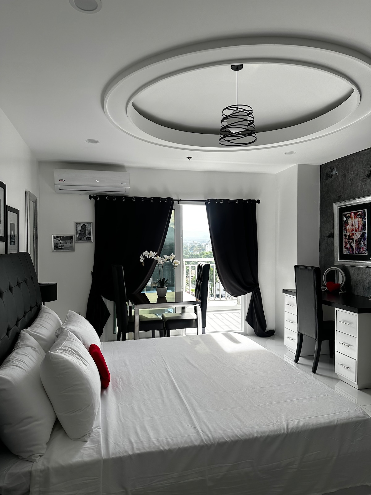 PISCINA TANCADA DEL 15 D'AGOST AL 15 D'OCTUBRE, PREU PROMOCIONAL DISPONIBLE. Gaudeix d'aquest espai únic situat en un dels llocs més sol·licitats de San Fernando, Pampanga! La paret divisòria permet un espai opulent i una divisió entre habitacions, alhora que s'alinea amb els preus de les unitats d'estudi. Aquesta unitat està orientada TANT a la PISCINA com a la muntanya ARAYAT! Hi ha 2 televisors GRANS, XBOX 1, NETFLIX, WIFI i equipament de CUINA per assegurar-te que la teva estada sigui el més acollidora possible.