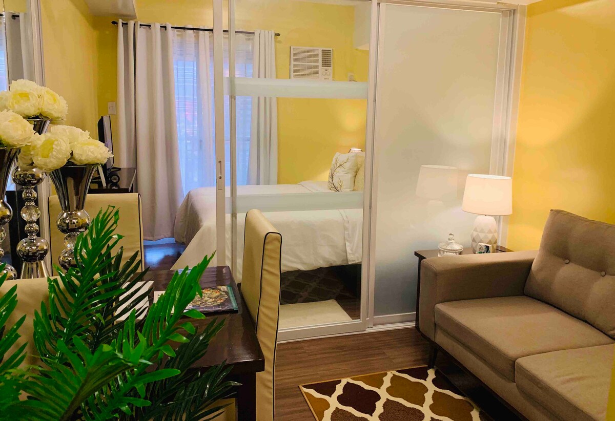 Welcome Guest! We are indeed so happy to welcome you in our Boutique Type Hotel/ Condo space. Everything in this space is conceptually designed for your comfort and relaxing stay. Our Facilities includes the following, Queen Size HOTEL bed with fine sheets and comforter,stylish Living and Dining area, Mini Kitchen that you can use for light cooking and a beautiful bath. Enjoy common amenities fitness gym,lounge, and 360 degrees sky lounge. Located in the Center of Pasay and Metro Manila.