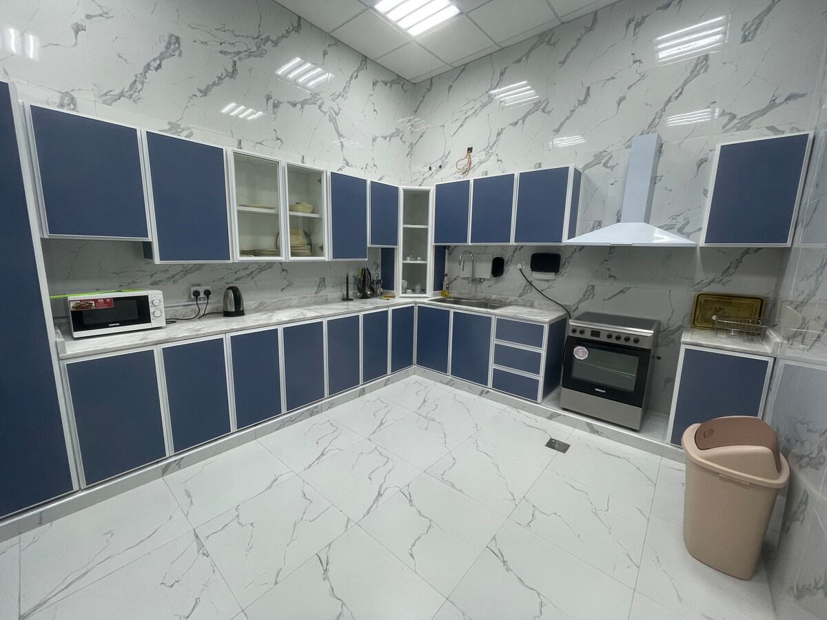 El meu pis té 1 habitació amb un llit king per a 2 persones i una habitació amb un llit individual per a 2 persones, i 1 habitació petita amb un llit petit per a 1 persona, totes les habitacions inclouen un bany i un bany està disponible a la sala d'estar, inclou sofàs còmodes. A més, hi ha una despatxa amb tots els equips de cuina i servei necessaris. El meu apartament forma part de l'adreça Fujairah Hotel, Alaqah. El meu pis està a la planta baixa on es pot gaudir del balcó