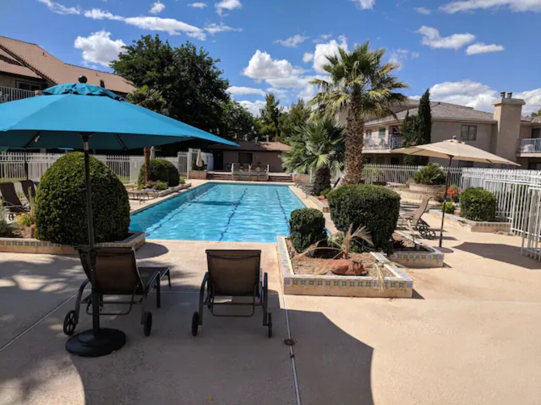 Vine a gaudir d'una escapada tranquil·la en aquesta preciosa casita de luxe situada en un complex turístic tancat d'Encanto. Pots gaudir d'espectaculars vistes de roca vermella de Snow Canyon des del teu pati privat amb foguera. La Casita es troba en una ubicació fantàstica, a poca distància dels serveis que inclouen climatitzada, piscina, banyera d'hidromassatge, instal·lacions d'entrenament i pistes de pickle ball. A només uns minuts de: - Camp de golf Black Desert - Snow Canyon State Park - Proves de senderisme - Proves de bicicletes - Red Mountain Spa - Teatre Tuacahn