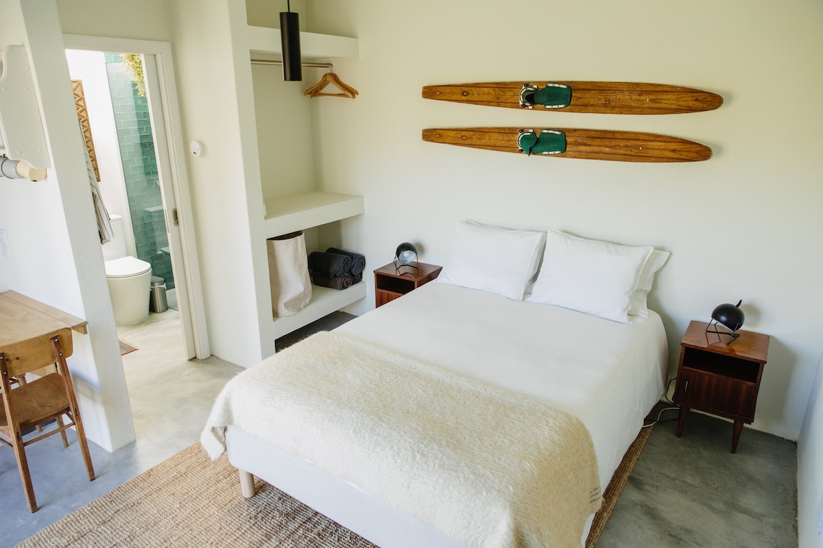 ESTUDI T0 (22m2) amb cuina equipada, wc i possibilitat d'allotjar una parella (llit doble) Possibilitat d'esmorzar a petició Casais Brancos Village Wifi de 250 MB Aire condicionat Aparcament privat Balcó petit Piscina climatitzada compartida Jardí compartit Cuina exterior compartida Aquest estudi pertany a la propietat Casa da Aldeia, al pati del darrere.