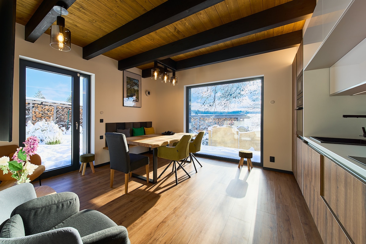 Un pis nou i accessible de dues habitacions es troba a poca distància de la pista d'esquí Plešivec/parc d'esquí infantil, pista de bobsleigh i parc de senderisme. Les pistes per córrer comencen just al costat de la casa. L'apartament inclou una pintoresca terrassa amb vistes a la muntanya i seients a l'aire lliure. L'apartament té un ampli espai per a esquís i bicicletes amb pany, que pot allotjar fins a 4 bicicletes i també està equipat amb un assecador d'esquís.