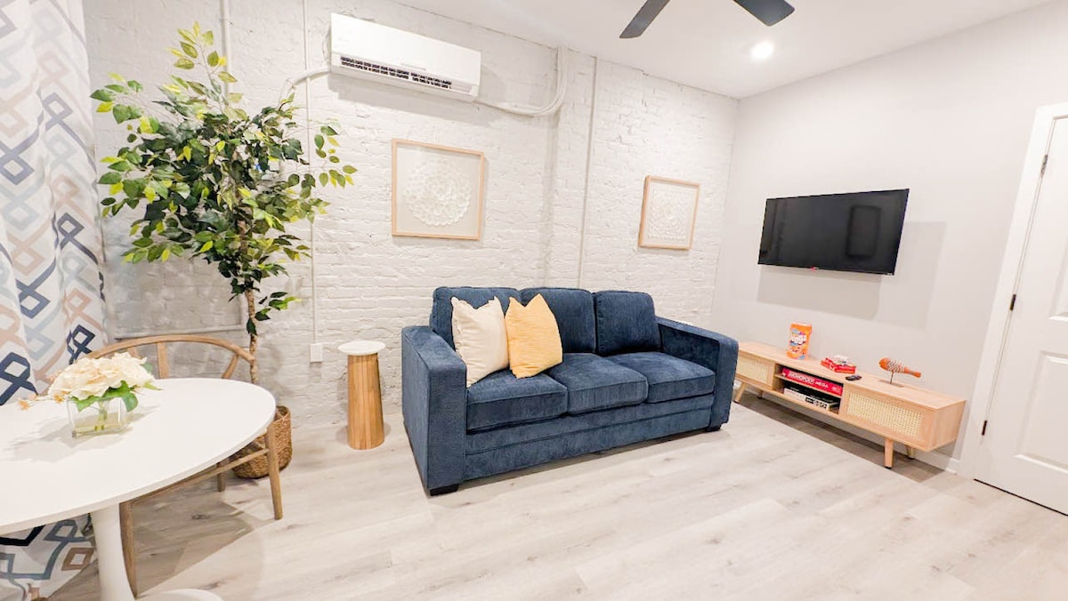 Un pati massiu amb taules de pícnic i moltes altres coses! Aquí trobaràs un pis lluminós, còmode i acabat de remodelar a la platja... I senyory és agradable! Hi ha alguns apartaments que estan a prop de la platja i no són tan agradables... no aquí! Un aire condicionat increïble per mantenir-te fresc i relaxar-te amb un ambient minimalista. Una cuina completament renovada per preparar un àpat deliciós o per tornar a escalfar un menjar local increïble. Bany de rajoles de marbre per preparar-te per al dia...