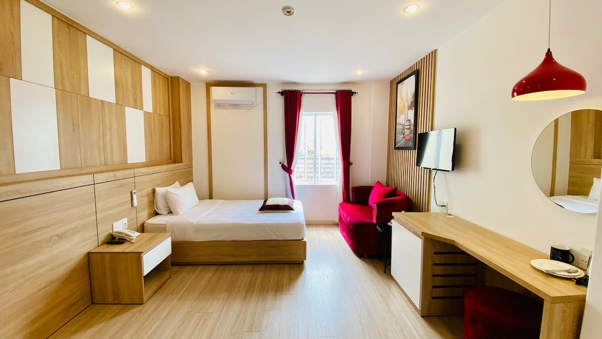 A cozy room with a window in a luxury hotel - 150m from My Khe beach - The beach voted by Forbes as the most attractive on the planet - 2km from Dragon Bridge, Han River Bridge, located in the busiest tourist area of Da Nang - An Thuong, so it is close to famous entertainment and dining spots, extremely convenient for you to explore Da Nang city - Located on a street far from the main road, so it is very quiet for you to sleep well - Outdoor swimming pool and gym on the top floor