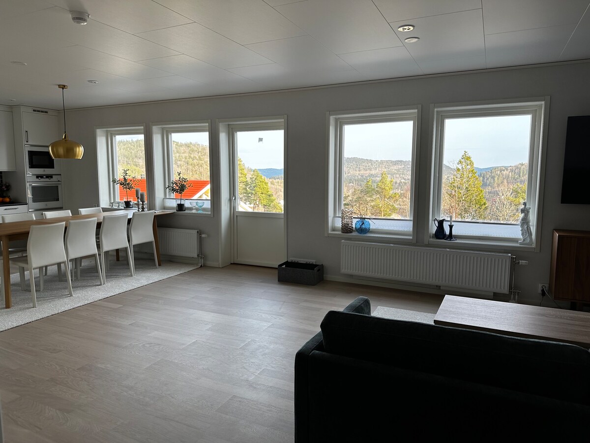 Nova casa de vacances a Søndeled! Excel·lent ubicació en una zona residencial tranquil·la amb bons veïns i vistes al fiord de Søndeled. Disposem d'un gran pati amb diverses zones d'estar al voltant de la casa i barbacoa. Endless amb zones de senderisme en la bella natura del sud, just a fora de la porta. Acollidora comunitat amb botigues de conveniència a 10 minuts a peu de la casa. Una casa de vacances perfecta al cor de Sørlandet. L'electricitat no està inclosa i es cobrarà per separat La piscina està disponible des de l'1 de maig fins a l'1 d'octubre