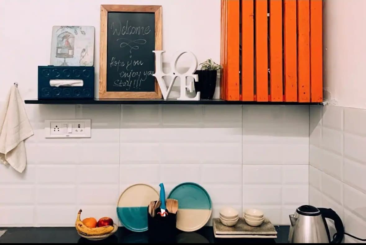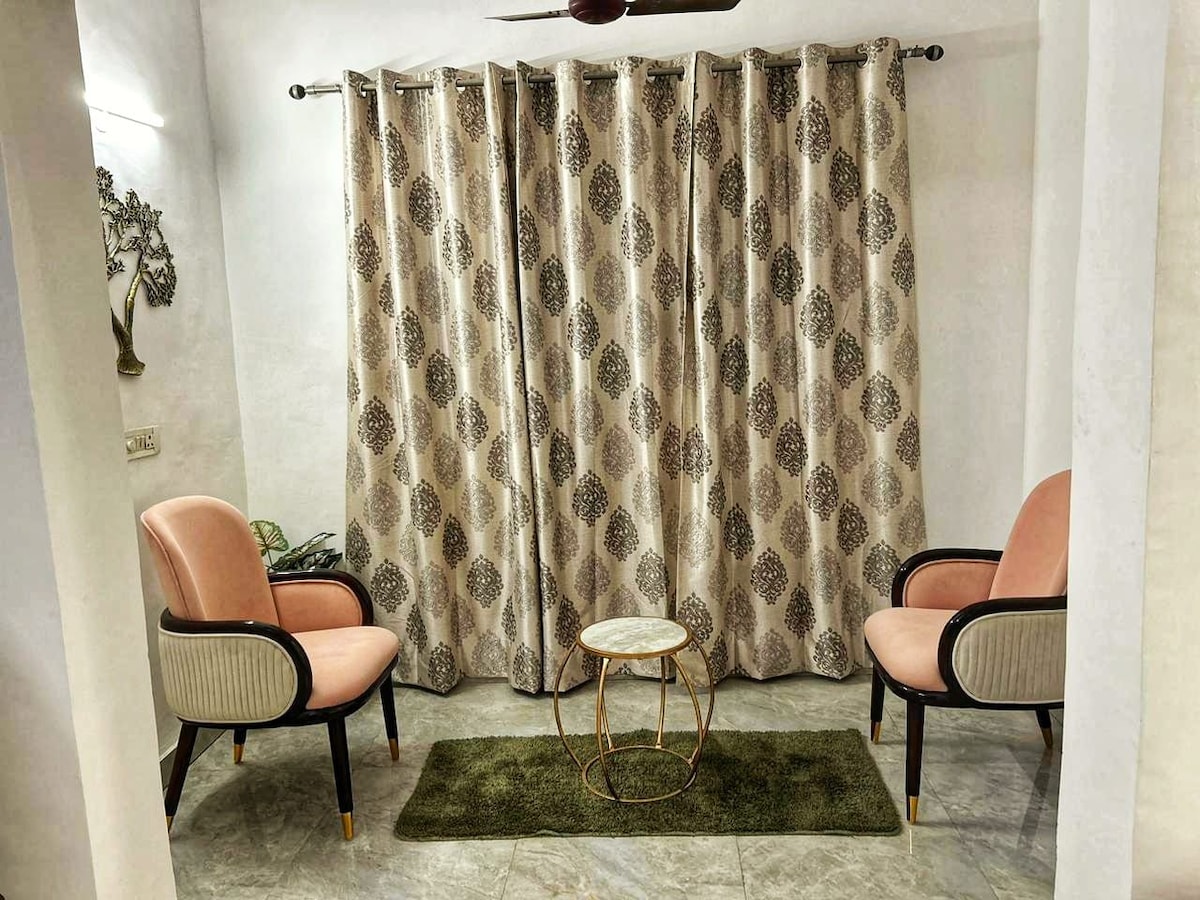 Boho-luxe 1BHK amb un ambient càlid i acollidor amb un balcó privat amb un gronxador amb coixins i llums de fades. ✨ Gaudeix d'un televisor intel·ligent de 55" amb barra de so i subwoofer per a una experiència de cinema. L'allotjament ofereix aire condicionat, purificador d'aire, inducció, nevera, RO, estris de cuina i te/cafè. 🙌🏻 Situat a prop de Shalimar Bagh Metro, a només 100 metres de KFC, Domino's i McDonald's, i a prop de PVR i Pacific Mall. 📍 Ideal per a cites o aniversaris, amb decoració disponible a petició.❤️