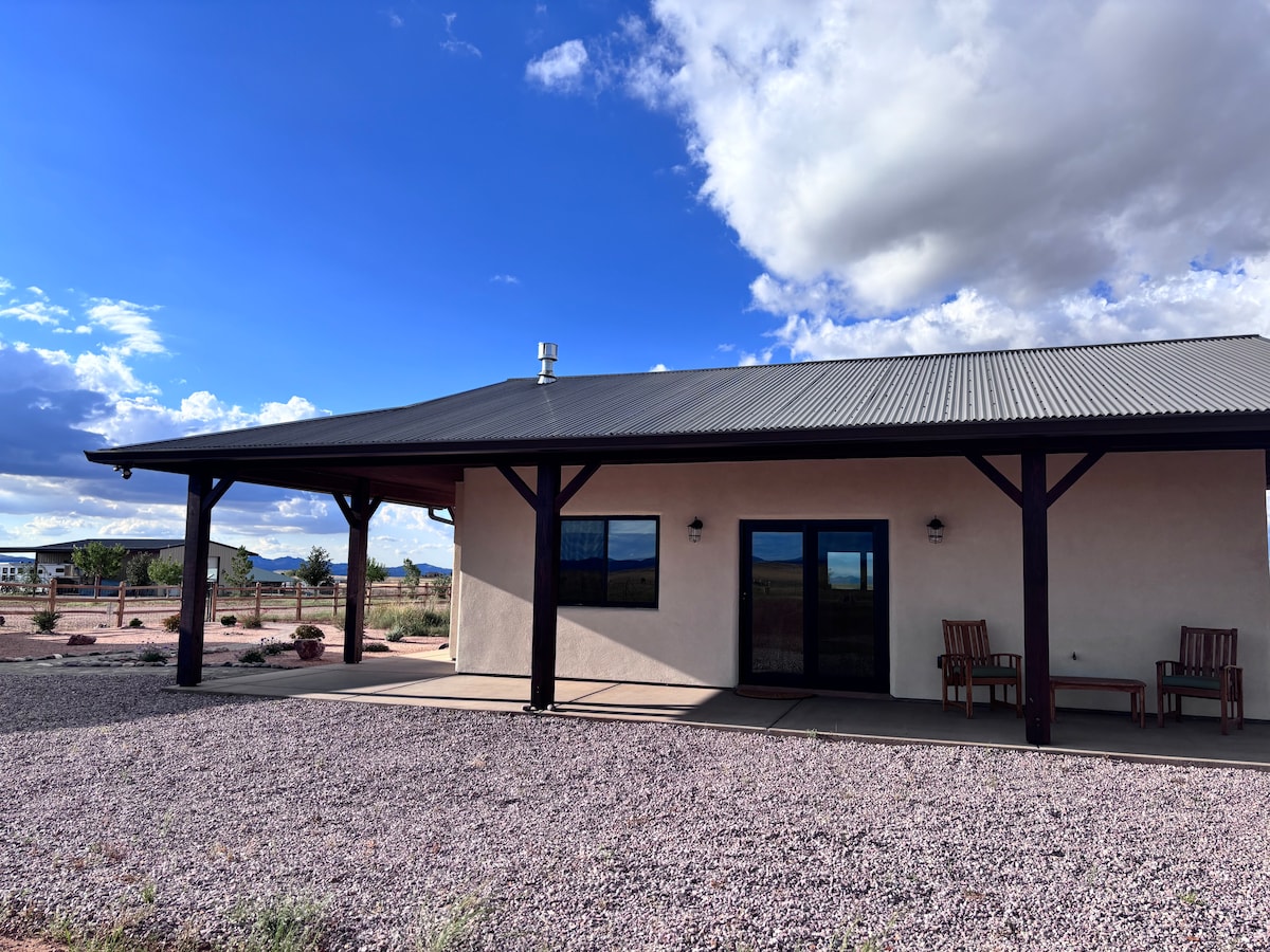 Escapa't a la regió vinícola del sud d'Arizona amb un viatge a aquesta caseta estudi d'Elgin situada en un ranxo de cavalls amb vistes sense obstruccions de les muntanyes Mustang. Relaxa't a la terrassa prenent un cafè o un vi de la zona. Visita qualsevol dels 21 cellers propers, com Deep Sky i Autumn Sage. Camina fins al nou celler Flying Kite. Aventura't al llac Patagonia o visita el llac Parker Canyon. Fes una excursió d'un dia a Bisbee o Tombstone. Gaudeix dels espais oberts. S'admeten animals de companyia sense cap tarifa.