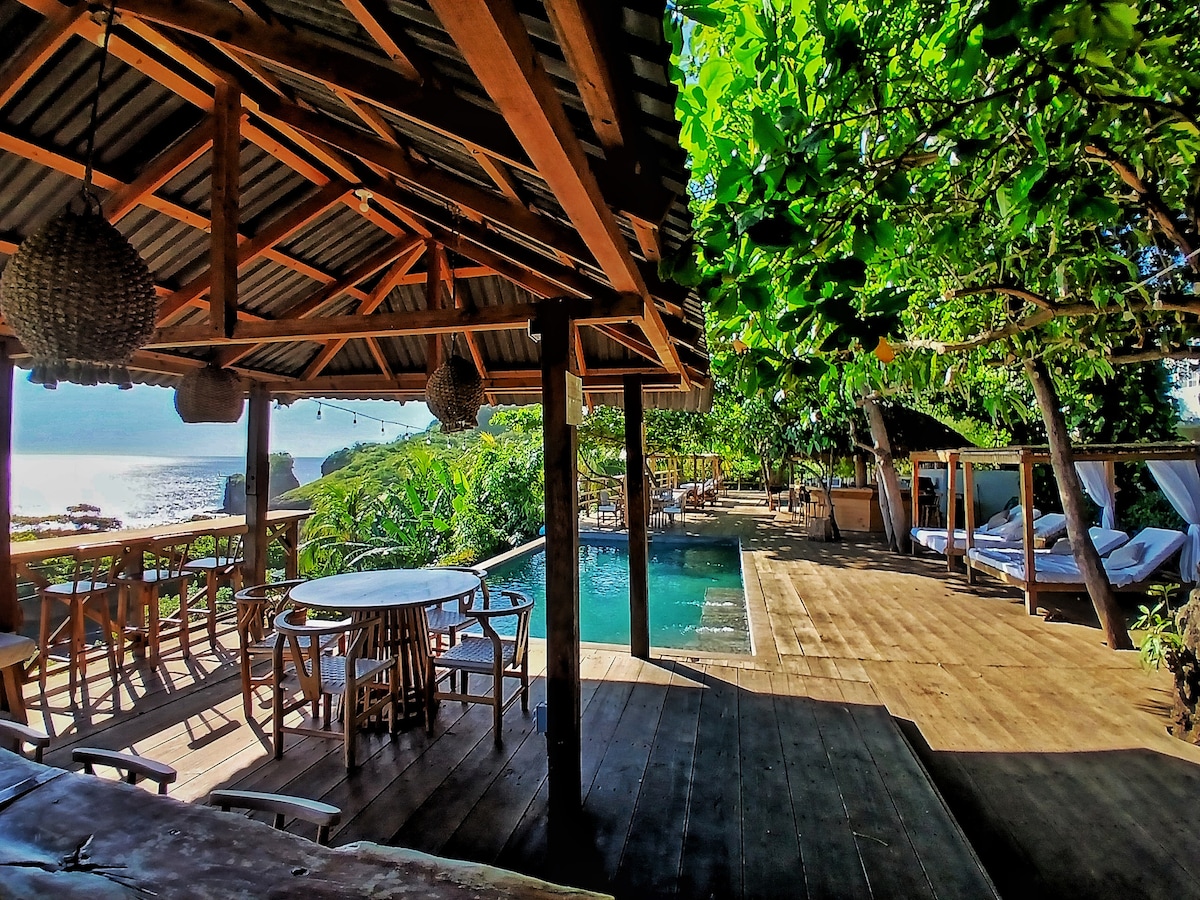 Just a 5-minute drive from El Zonte Beach, this cliffside villa offers stunning ocean views, surrounded by nature and a constant breeze, perfect for a relaxing escape. The villa features 2 bedrooms, with a king-size bed, perfect for couples and another beedroom with 2 double beds, perfect for up to 4 people. It also has 3 bathrooms, a fully equipped kitchen, a living room, a dining room, and a terrace with a small private pool, from where you can enjoy the best sunsets in El Salvador.