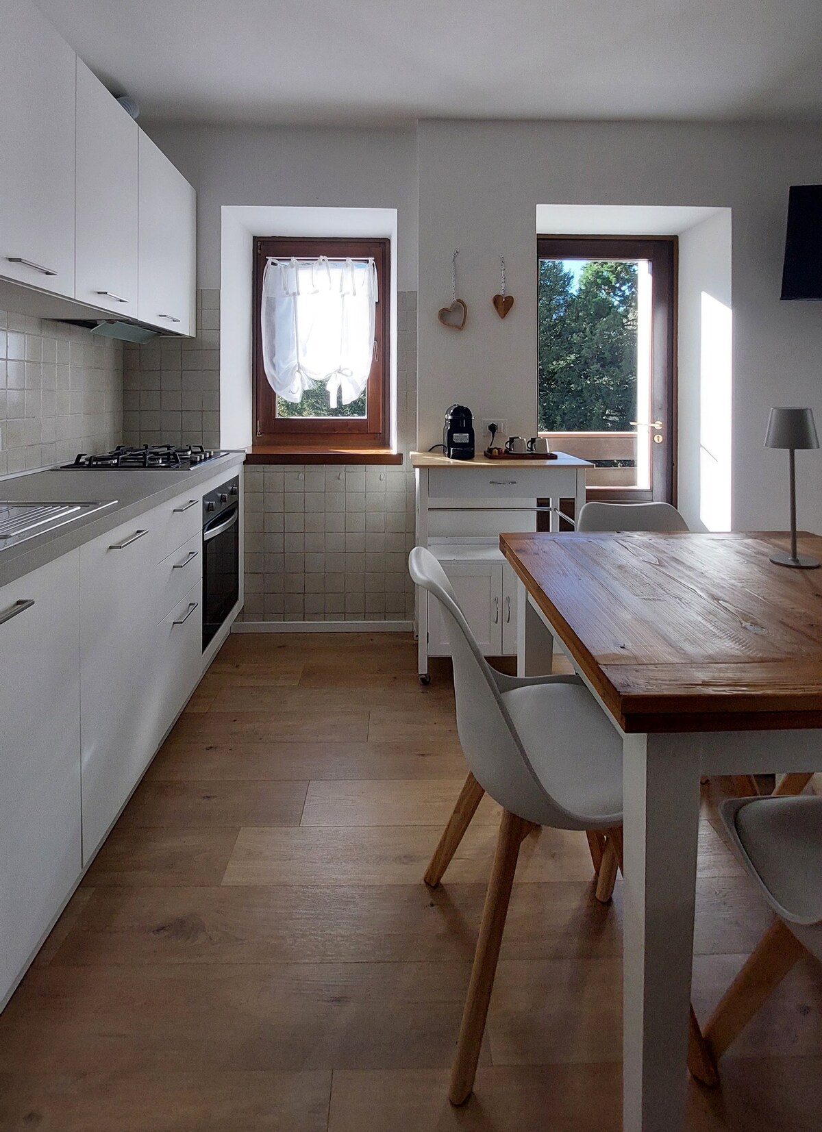 Casa de muntanya a 600 m d'altitud, envoltada de castanyers i faigs. A 6 km d'Arco, a prop del llac de Garda, ideal per a unes vacances relaxants i per treballar-hi, per als amants del senderisme, la bicicleta de muntanya, l'escalada i les passejades per la natura. Equipat amb totes les comoditats, disposa d'un gran jardí tancat (300 metres quadrats), aparcaments privats i zona de relaxació a l'aire lliure per passar les nits junts. S'admeten animals de companyia. Internet per satèl·lit amb una velocitat de 200/250 Mb/s.