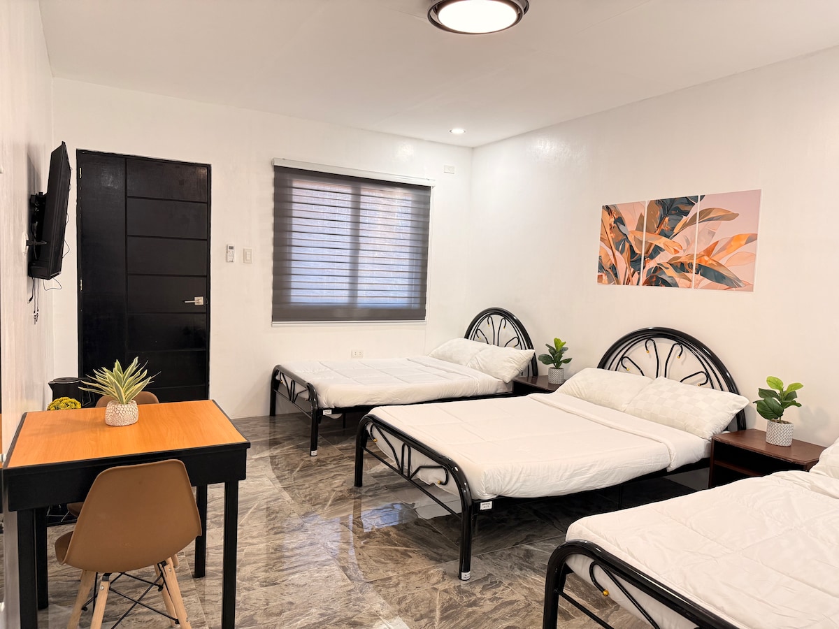 Fully furnished airconditioned Studio apartment complemented with kitchen and wares for cooking, kettle, a flat Smart Tv (Netflix)and a cable channel, free wifi, 1 toilet & bath with hot & cold shower. Room is located on second-floor of the building. Check-in at 2PM, Check-out 12NN Early check-in is possible if the unit is already available. Fee is (P400) when you check-in between 6-11AM.
