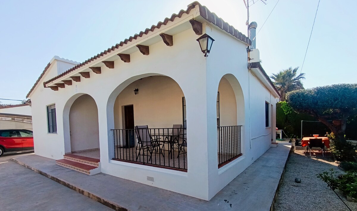 # Aquest bonic xalet, totalment reformat el 2016, està situat a 100 m de la platja dels Poblets, en una zona més tranquil·la de la platja de l'Almadrava. Els bars, restaurants i altres serveis locals més propers es troben a poca distància a la platja d'Almadrava. La ciutat de Denia està a 7 km i és fàcilment accessible en transport públic o en cotxe. Es recomana un cotxe per arribar a l'allotjament i fer visites turístiques, però hi ha una línia d'autobusos al centre de Denia i la parada més propera.