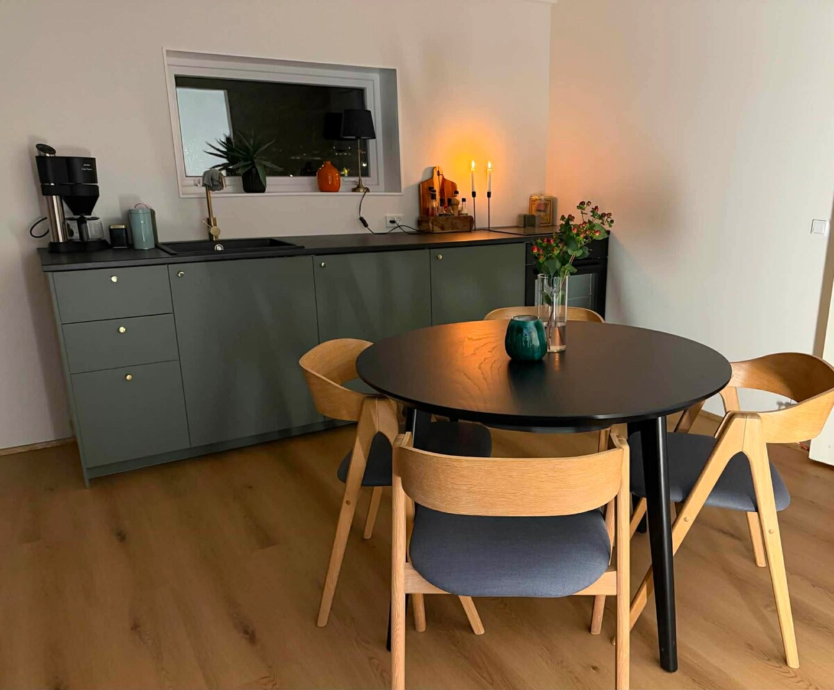 Aquesta idea s'ha alimentat i madurat durant diversos anys. Vam començar a construir aquestes quatre cases el 17 de gener i acabaran el 18 de març . Les antigues cases de les Faroeses estan d'acord amb el paisatge general de les Faroeses i, per tant, ens hem dirigit naturalment a aquest antic mètode de construcció/edificació. La planta baixa: cuina i sala d'estar en una sola planta. Acaba un bany. Pis superior: un dormitori principal, destinat a dos adults i un espai obert addicional per dormir amb dos adults més. La vista des de la casa està considerada entre les millors de les Illes Feroe. El nostre objectiu és proporcionar una experiència de qualitat garantida als nostres hostes i garantir la màxima comoditat. welcome Anita & Tróndur:)