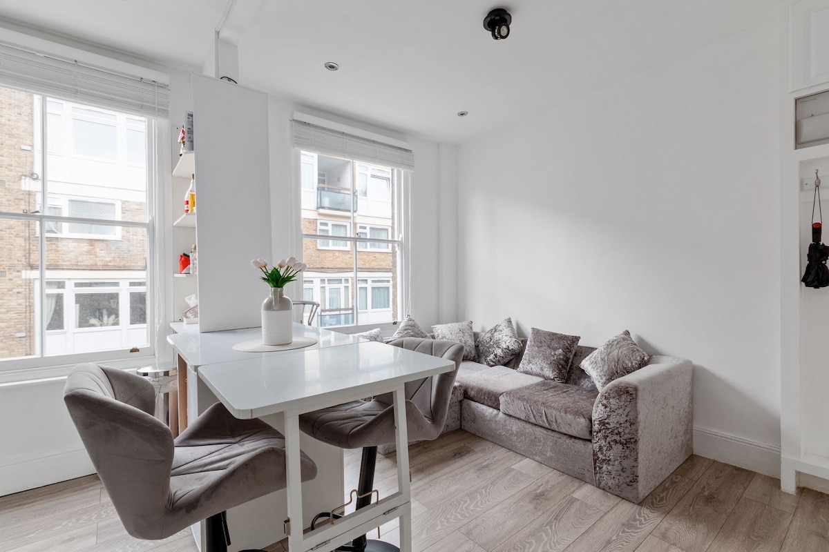 You'll be so central, you won't need transportation. We're just minutes away from the London Eye, Big Ben, Buckingham Palace, and other major attractions. Two tube stations are nearby, and buses stop right below the building. The studio, designed by an interior decorator, is hosted by a SuperHost passionate about cleanliness and customer experience. Enjoy ergonomic pillows, professionally laundered linens, various coffee flavors, and free Netflix. You'll love it! Luggage storage available