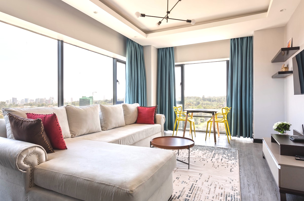 Reserva la teva estada al nostre increïble apartament de 2 llits i 2 banys. Situat en un edifici modern amb 3 ascensors d'alta velocitat, piscina al terrat i gimnàs. Vine a gaudir d'unes postes de sol impressionants des del balcó o relaxa't a l'interior mentre t'escapis de l'enrenou de la ciutat. Ideal tant per a estades curtes com llargues amb seguretat i recepció les 24 hores són per a una estada còmoda i sense estrès. En una ubicació cèntrica a només 5 minuts del districte financer, a 20 minuts de JKIA, a 10 minuts del parc nacional i a 5 minuts de l'aeroport de Wilson.