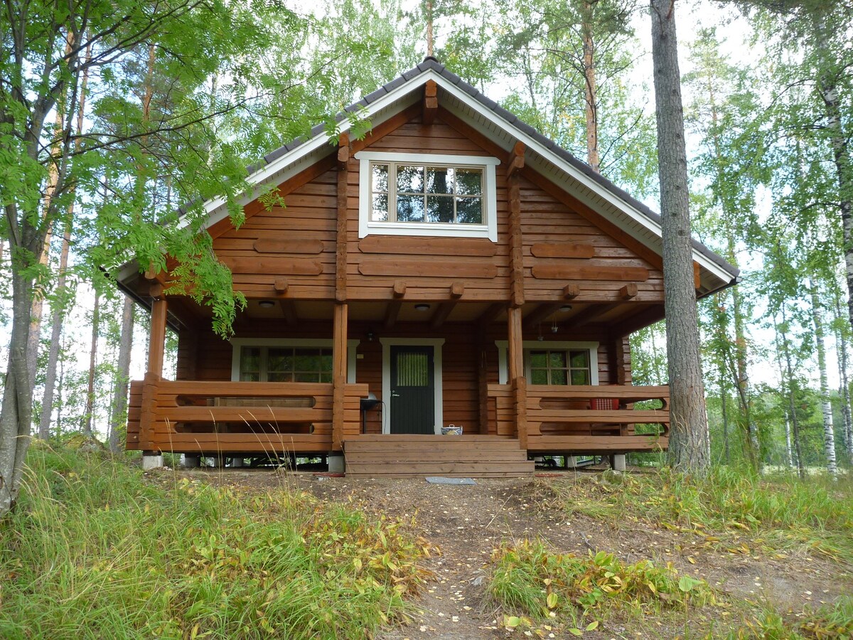 Espaiosa casa rural de troncs al penya-segat de 115 metres amb esplèndides vistes sobre el llac Saimaa. Pati de gespa dissenyat per paisatge, columpi de jardí. Pati de 40 metres quadrats amb barbacoa i mobles de jardí i il·luminació LED original. La casa rural té capacitat per a 8 hostes. Cuina totalment equipada, sala d'estar amb llar de foc i canals per satèl·lit TV, sauna, dutxa, WC. Lloc de graella darrere de la casa rural. Centre d'esquí de baixada a 200 m. Aeroport de Lappeenranta a 45 minuts en cotxe.