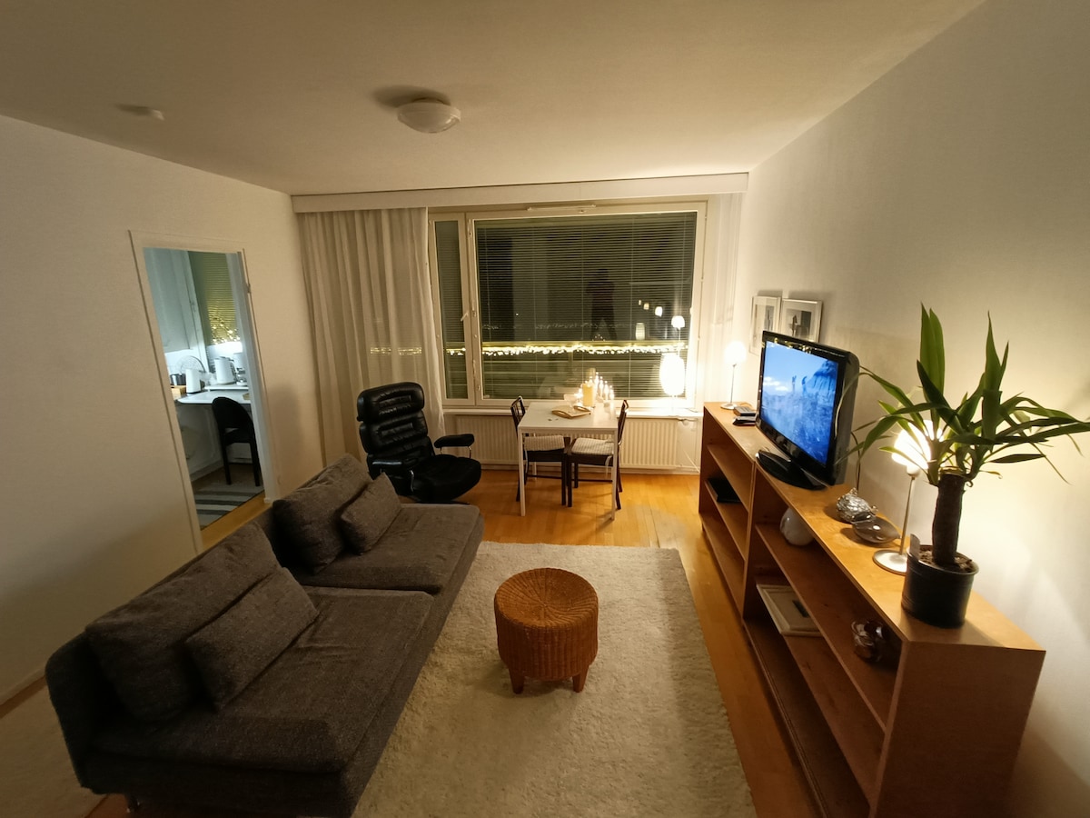 Apartament d'una habitació. 1906 Edifici de magatzem de maons vermell construït s'ha convertit en 3 apartaments per al personal. Al costat de Saimaan, a uns 600 metres del centre de la ciutat o del port de Lappeenrannan. Entorn tranquil i verd. Platja a 500 metres, però el sol pots prendre al meu pati de gespa verda a l'estiu. La gran botiga de comestibles S-market (obert les 24 hores) és un altre costat del carrer i de la gasolinera a 100 metres. Tenim cotxe i wifi per a tu.