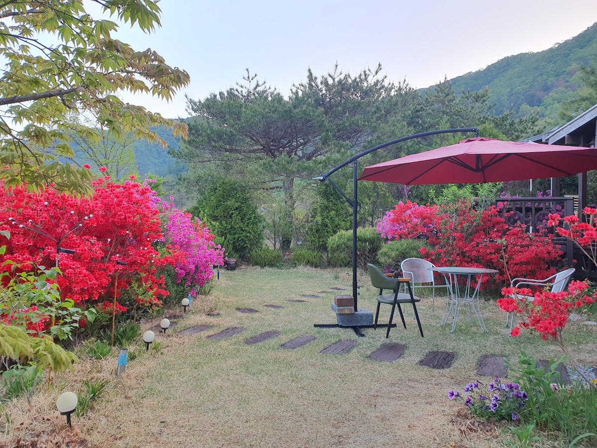 Poble amb un paisatge preciós 😀 A 1 hora de Seül A 7 minuts en cotxe de Vivaldi Un poble pintoresc al bosc, a prop del riu Casa rural molt petita El propietari no és presencial. ^ ^ Tots 170 pyeong, Jardí de gespa de 120 metres quadrats Casa acollidora de 15 pyeong Bonica terrassa 10 pyeong, barbacoa disponible! No et preocupis per la neu ni la pluja 😄 2 places d'aparcament privades Una habitació / sala d'estar i cuina / bany Estàndard per a 1 persona (màxim 4 persones) 1 persona més, incloent-hi la visita: 30 000 KRW Només gossos de 8 quilos o menys Càrrec addicional: 30 000 wons per gos Si n'hi ha més d'1, fes la consulta i confirma-ho per separat! Amb la família, els amants i els amics Encara que plogui, no cal que et preocupis per les barbacoes i les fogueres. Pots escoltar les estrelles del cel nocturn, el cant dels ocells i el so del riu, i pots relaxar-te com si fossis d'acampada en una caseta de camp, i pots cuinar còmodament a la casa. Curació. No és una casa de luxe. Vine al camp a relaxar-te. ^.^ La wifi no funciona 😀 A l'hivern, si augmentes la temperatura, pots fer servir l'allotjament com un jjimjilbang. 😀 A la casa es pot menjar i cuinar! Arribada: a partir de les 15:00 Sortida: abans de les 11:00 No t'oblidis de seguir-los. Altres hostes Una vida feliç…