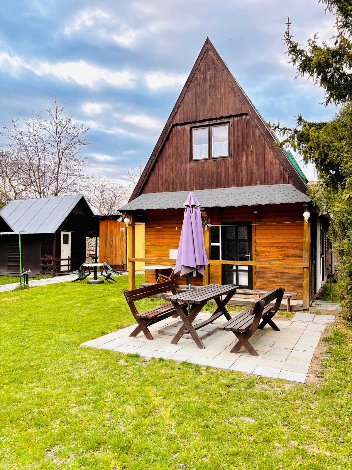 Autèntica cabana canadenca per a 1 a 9 persones amb 3 dormitoris i 2 banys. Oferim allotjament en una romàntica cabina canadenca amb un jardí preciós i un estany per banyar-se a la frontera dels pobles de Suchý i Velenov en el paisatge de la Drahanská vrchovina, a prop de l'estany de Sušský. Vine a recarregar les piles a les cabanes on es combinen la fusta, la pedra, el foc i l'aigua. Gaudeix d'un jardí preciós amb un gronxador, un espai per fer-hi foc, un parc infantil, un sorral, un estany per nedar amb cascada i il·luminació nocturna.