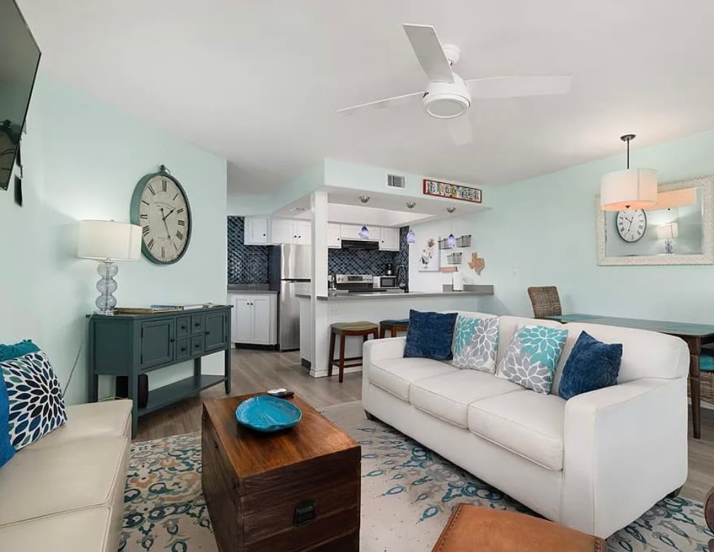 Blue Marlin Condo offers modern comfort just steps from the beach. This stylish condo features sleek interiors, open living spaces, and access to resort-style amenities like tennis and racket ball courts, gym, sauna and outdoor BBQ grills. While it doesn’t have a beachfront view, its prime location ensures easy access to sandy shores, local dining, and coastal attractions. Perfect for those seeking a relaxing seaside escape. Condo sleeps 4 comfortably, 1 king bed, 1 sofa bed w/ equipped kitchen.