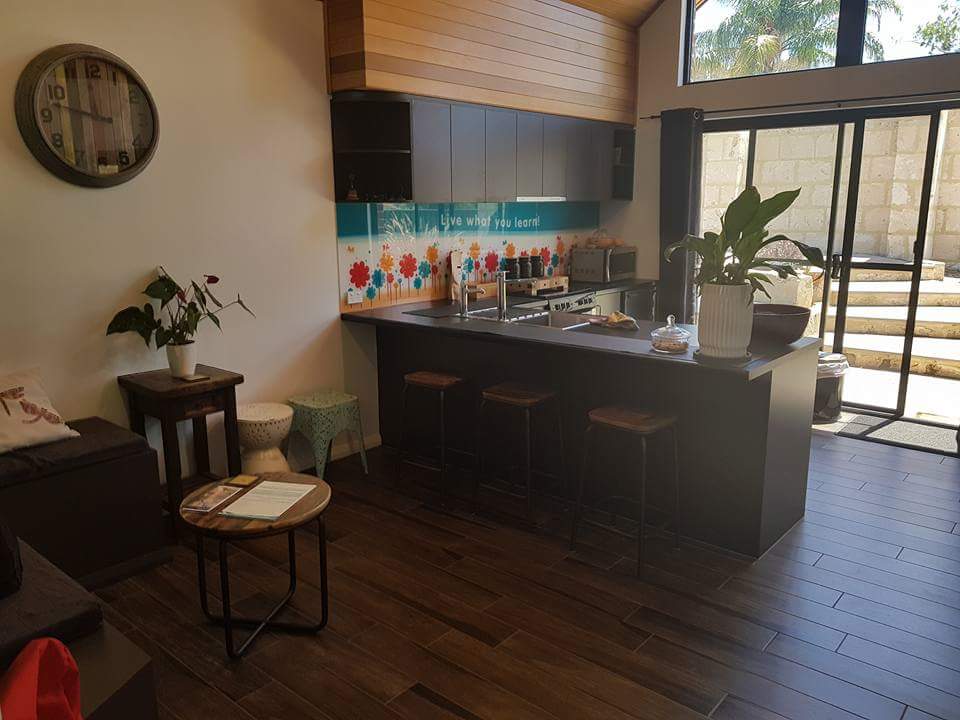 Estudi independent, separat de la casa principal. Ubicació cèntrica, a pocs minuts a peu de la platja, el moll i el Saltwater Arts Centre. Cafès, bars i supermercats a poca distància. Aparcament a l'allotjament, entrada privada Hi poden dormir fins a 3 adults (compartint habitació) o 2 adults amb 1 o 2 nens petits. Llit infantil i bressol portàtil a petició. Calefacció/refrigeració eficient. Emmagatzematge segur de bicicletes. Una base perfecta per als turistes de Busselton i la regió de Margaret River o per als participants en esdeveniments esportius o artístics locals. Accés independent