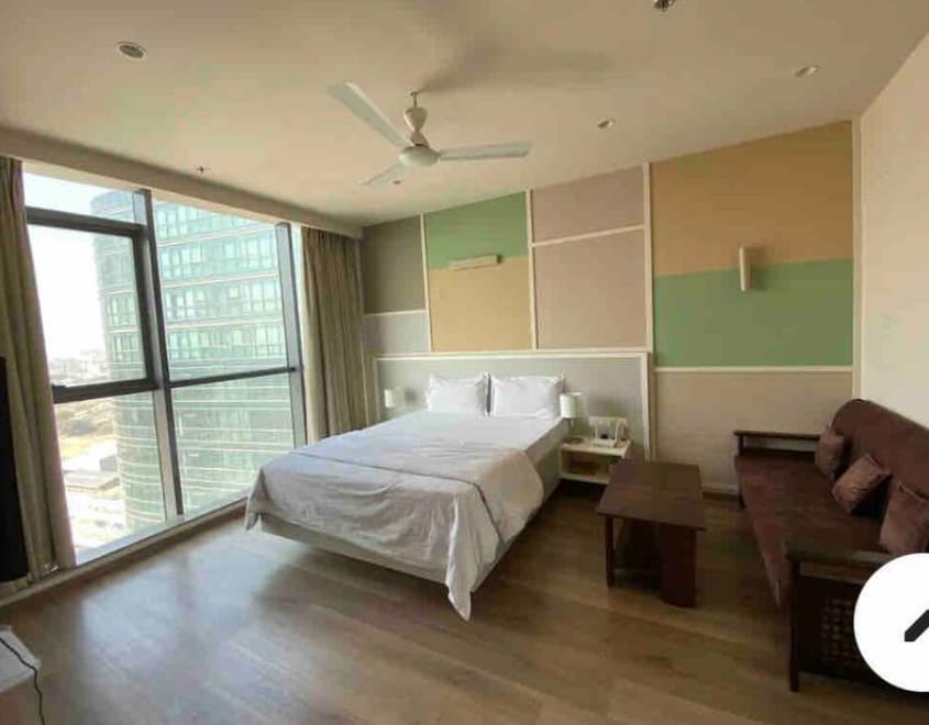 Pis amb estil al cor de Gurgaon! Escapa't a aquest apartament de disseny al Sector 49, que combina l'encant urbà amb una comoditat total. Gaudeix d'un llit còmode de mida King, una cuina completa, un bany elegant, un espai de treball amb wifi i un balcó privat amb vistes a la ciutat. ✦ Ubicació privilegiada ✔ A 20 minuts de l'aeroport IGI i a prop de DLF Cyber Hub, centres comercials i cafeteries. Accés ✦ independent i aparcament sense complicacions ✦ Piscina al terrat (499 IN4 + impostos per persona) ✦ Ideal per a escapades romàntiques, viatges en solitari o viatges corporatius.