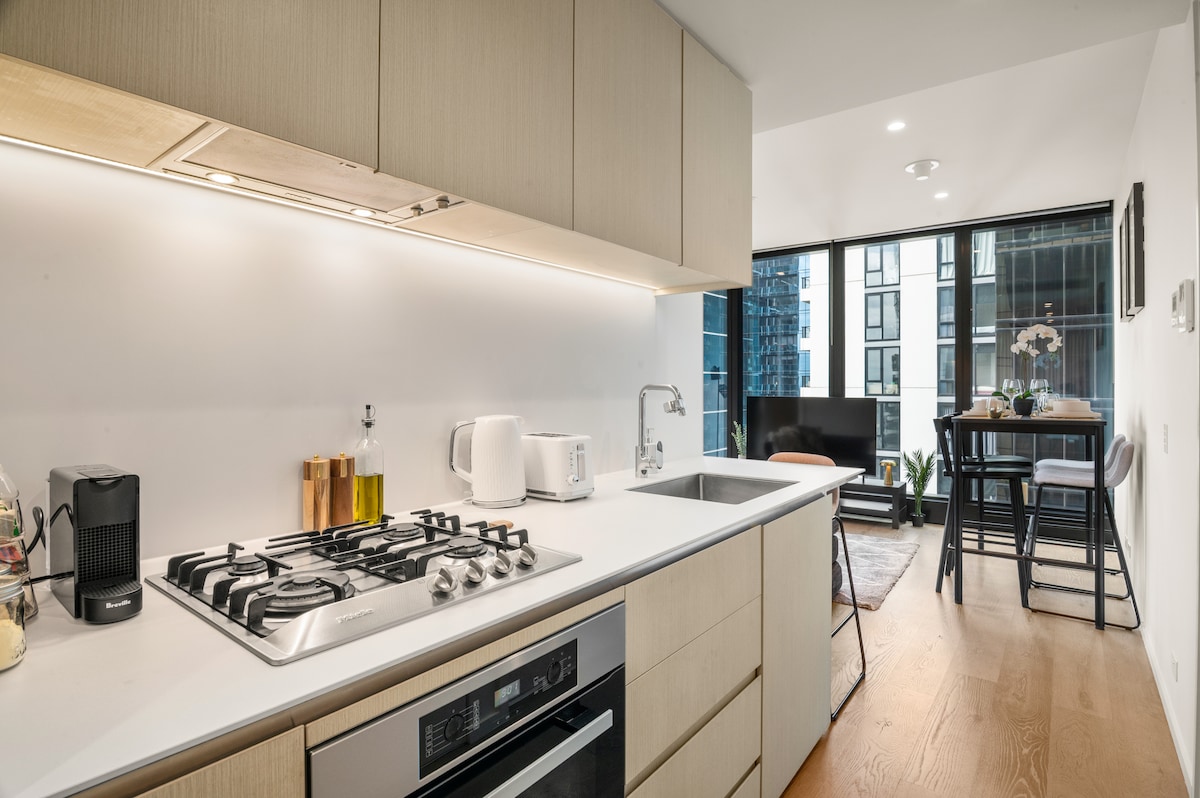 Et dono la benvinguda a Queensbridge, un apartament d'un dormitori amb un disseny molt bonic que combina un disseny contemporani amb un confort modern i refinat. Els acabats de fusta càlida, els detalls geomètrics i la decoració cuidada creen un espai elegant però acollidor. Gaudeix d'unes vistes panoràmiques del cel que et transmeten una sensació de calma des de dalt de tot a Melbourne. Els hostes tenen accés a equipaments i serveis de primera qualitat, com ara una piscina interior climatitzada, un gimnàs i unes instal·lacions compartides de cinc estrelles, perfectes per a una estada relaxant a la ciutat.