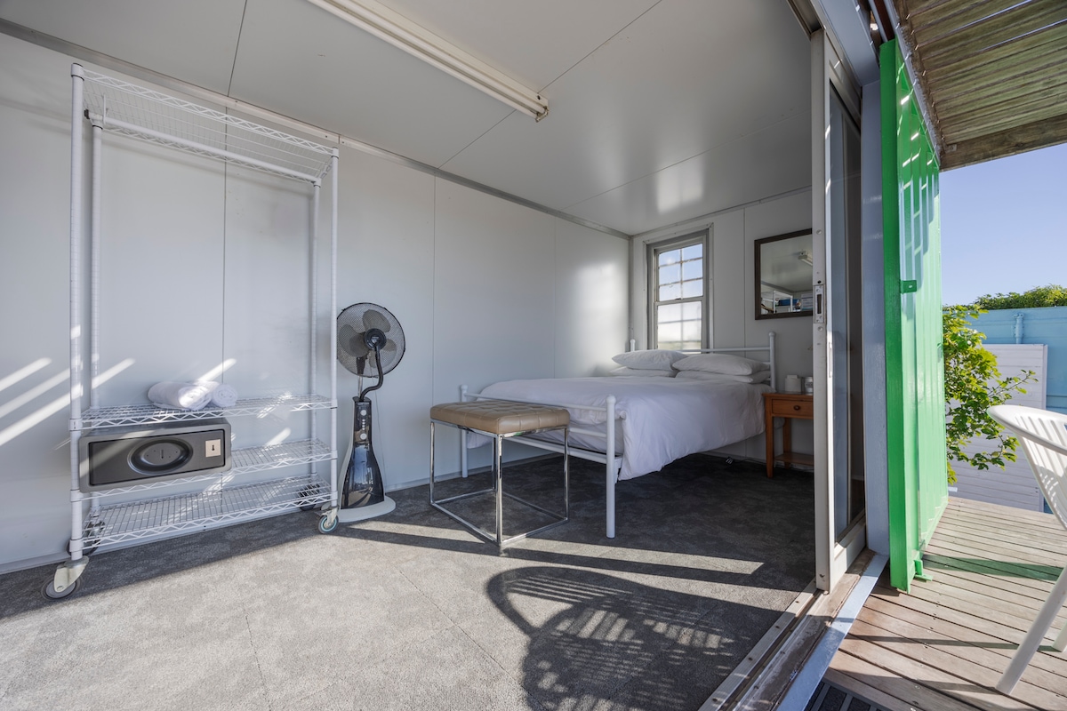 "The Tin Shack" és una bonica caseta construïda amb contenidors situada en un turó darrere de la ciutat de St Helena Bay, a la costa oest. La caseta té vistes a tota la badia i a les majestuoses muntanyes Cederberg a la distància. Té dos dormitoris amb bany privat, cadascun amb dutxa, pica i vàter de compost. La cuina/sala d'estar oberta i espaiosa té una llar de foc de llenya de ferro colat que fa que la caseta sigui càlida i acollidora fins i tot a l'hivern. La terrassa espaiosa té una barbacoa Weber, seients a l'aire lliure i una banyera d'hidromassatge de llenya.