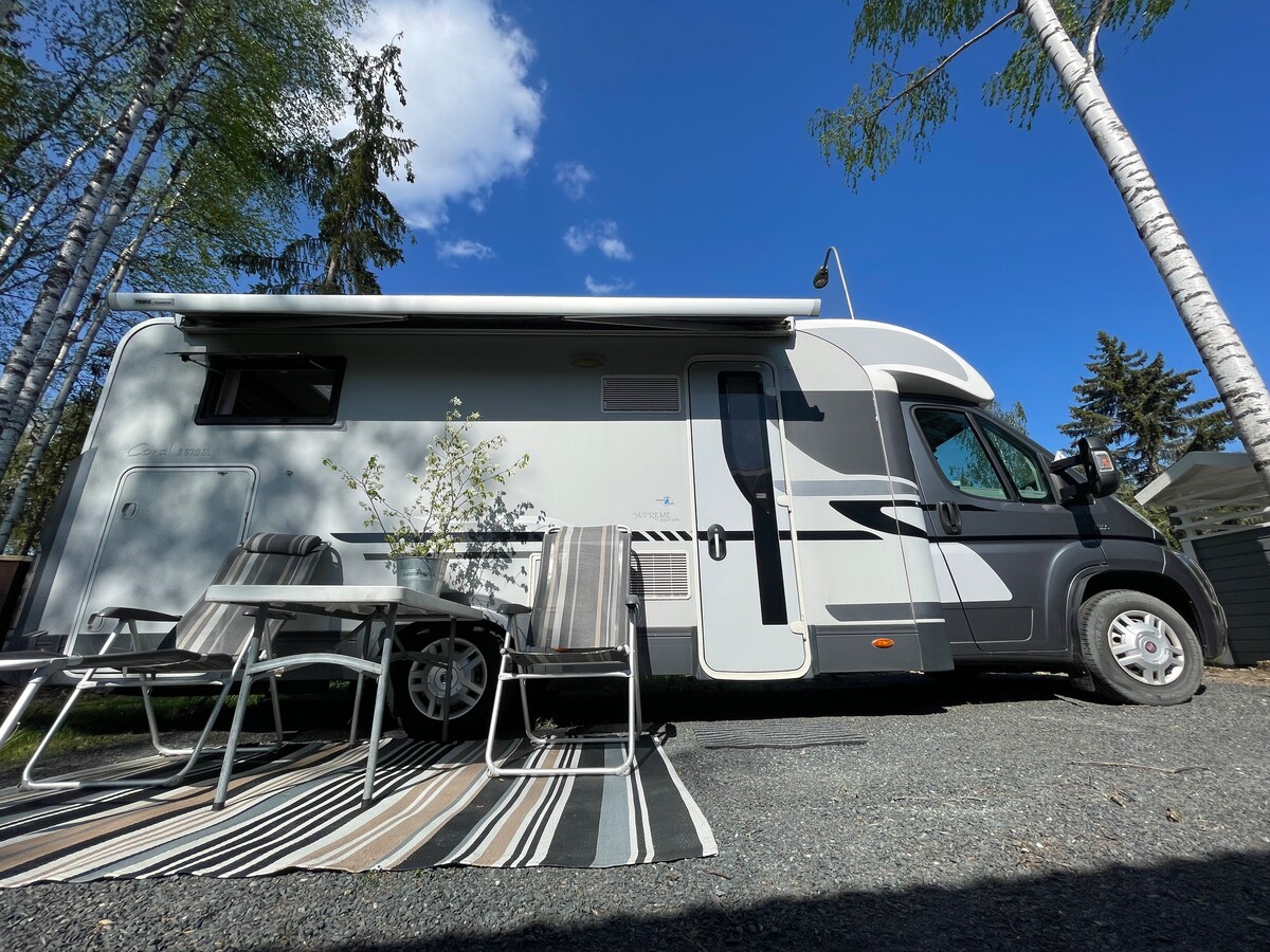 A modern camper equipped with the basics for those who need an affordable yet comfortable place to sleep near the Helsinki-Vantaa airport and greatly connected to Helsinki downtown. The camper is equipped with both gas and electricity for warm showers and fast but tasty hot meals. Ideal for max 4 people. Grilling, sunbathing, music and more is allowed in the premises. Flexibility to check in and out. Pickup to/from the airport is negotiable for an additional charge.