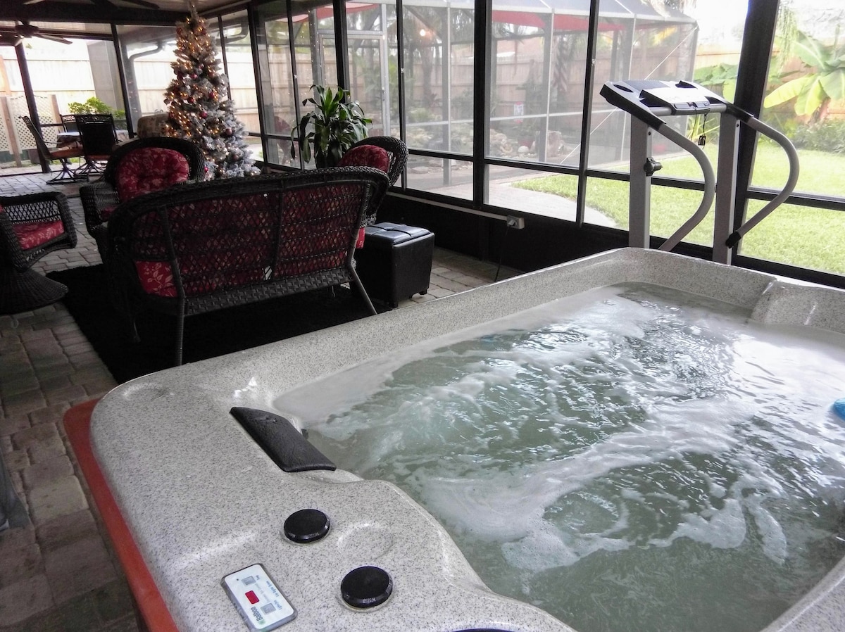 Casa acollidora situada en un barri tranquil i segur. A 3 milles i mig de la platja, a 1 milla de la clínica Mayo, a 5 milles del centre de la ciutat, a 1 1/2 milla d'un port esportiu i a 1 milla d'una reserva estatal amb accés a les vies aquàtiques costaneres. A poca distància a peu d'un parc amb pistes de tennis i parc infantil. El parc aquàtic Adventure Landing es troba a 2,5 milles de distància. A 1 milla a peu de botigues i restaurants. Gaudeix d'una tassa de cafè a la pantalla del lanai escoltant la cascada de l'estany Koi.