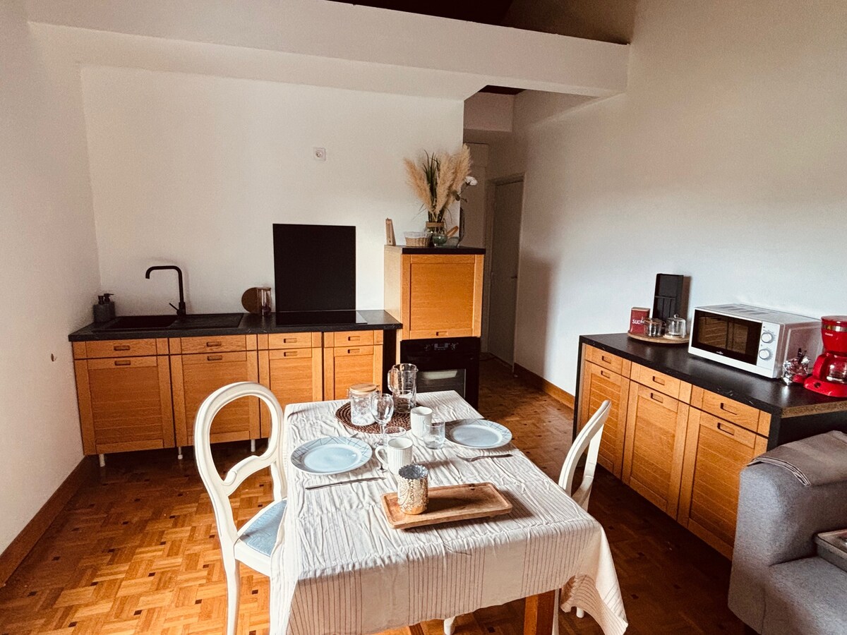 Preciós dúplex de 63m², completament reformat, molt lluminós, perfecte per a la teva estada a Angouleme. A només 2 minuts de l'estació de tren i a 5 minuts del centre històric (restaurants, museus, bars), pots gaudir fàcilment de l'atractiu de la ciutat i de la comoditat del pis. Roba de llit de primera qualitat, dutxa preciosa, Netflix, Amazon Prime, cuina equipada, cafè, te, llençols, tovalloles, tot està inclòs. Només has de venir i deixar l'equipatge. p.s: el segon dormitori (gris) és una opció.