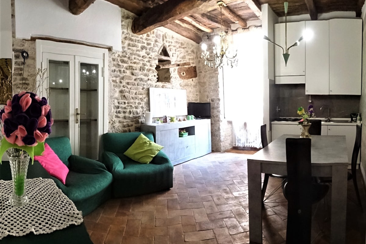 El lloc acollidor està ben situat a pocs passos de la Basílica de San Francesc. Es tracta d'un apartament en un antic habitatge situat a les parets exteriors de la ciutat. Té una vista dels turons d'Assís i dels boscos de San Francesco. L'aparcament gratuït està a 5 minuts a peu i l'aparcament de pagament està a 3 minuts. Un lloc de pau i tranquil·litat al punt més important de la ciutat inserit en l'ambient medieval i el verd del camp d'Umbria.