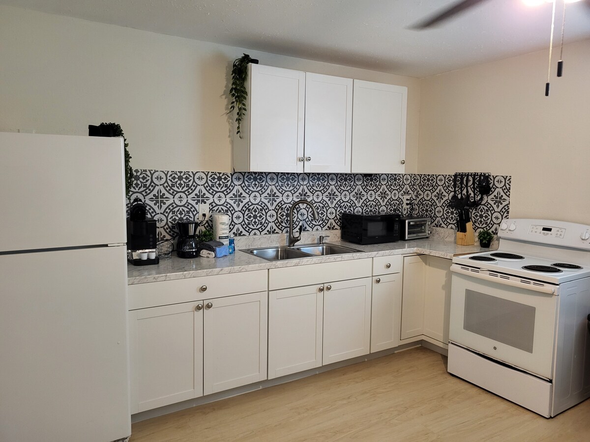 Gaudeix d'aquesta moderna casa adossada a només 15 minuts en cotxe de la platja. Aquesta propietat està equipada amb 3 televisors intel·ligents Alexas a totes les habitacions. Una cafetera Keurig per satisfer totes les teves necessitats de cafè. A dalt hi ha 1 llit queen i 2 llits de mida completa amb capacitat per a 6 persones. S'admeten animals de companyia amb una tarifa addicional per animals de companyia.🐶