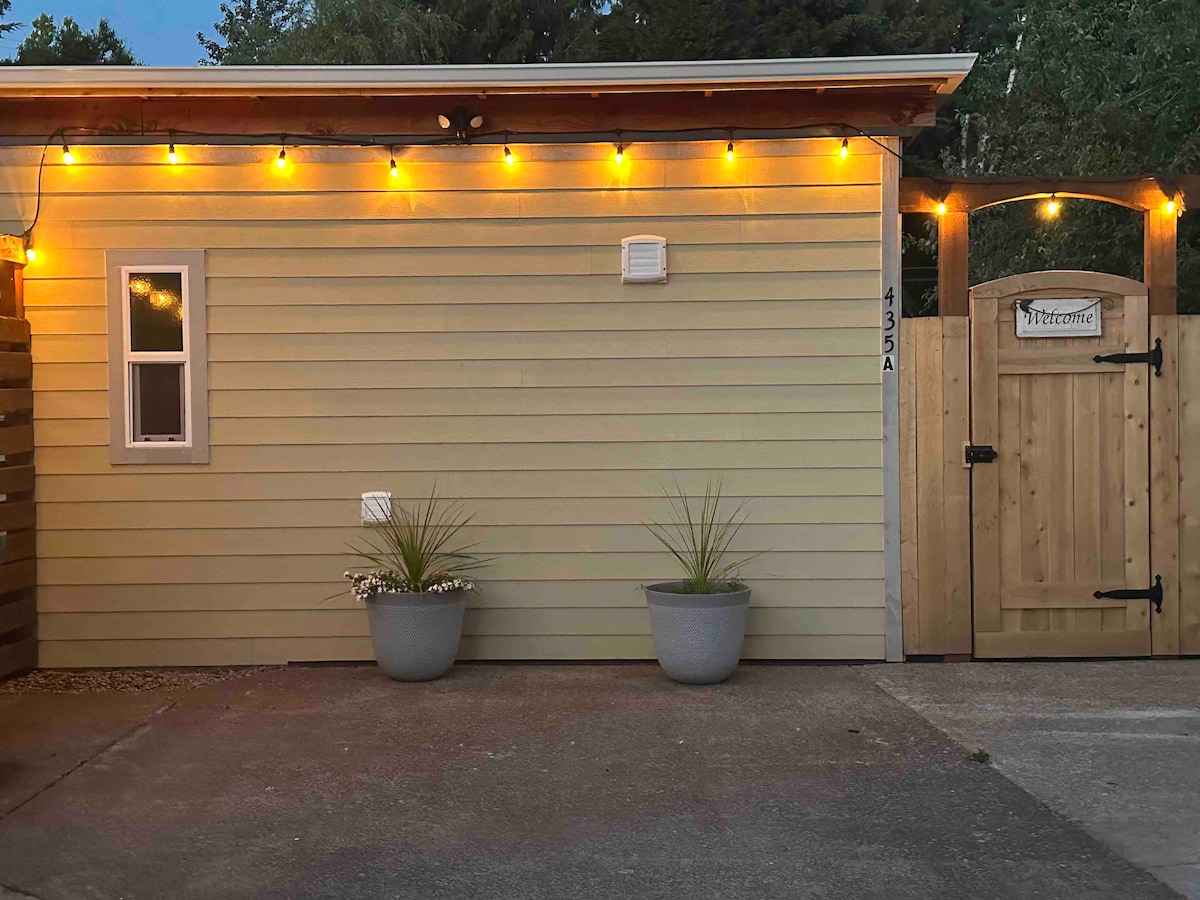 Un bungalou privat de 450 metres quadrats t'espera en aquest bungalou de nova construcció. Relaxa't al llit per gaudir d'una gran nit de somni o descansa a la terrassa i gaudeix de la llar de foc. Tens tot el que necessites per estar còmode, incloent-hi una cuina completa, un bany espaiós, una rentadora/assecadora, televisor i molt d'emmagatzematge. Gaudeix del millor d'Eugene. El bungalou és a pocs minuts de l'estadi Autzen, de botigues i restaurants i d'un carril bici. A prop de diverses rutes de senderisme, cellers i botigues a Eugene o a Coburg.