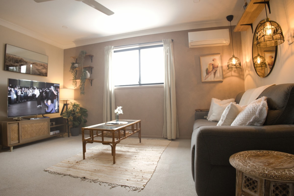 Apartament independent amb aire condicionat per a dos hostes amb accés exclusiu a les zones a l'aire lliure i a la piscina. Característiques : . Ventilador exterior i escalfadors amb persianes resistents a la intempèrie . Barbacoa, taules de menjador a l'aire lliure i saló . Televisor intel·ligent de 70 polzades amb yes de Chrome . Cuina d'inducció i cuina de xef . rebost totalment equipat . Cafetera i càpsula de cafè Gold Coast i Brisbane estan a uns 30 minuts en cotxe. L'apartament és adequat per a dos hostes adults. No hi ha esdeveniments, si us plau!