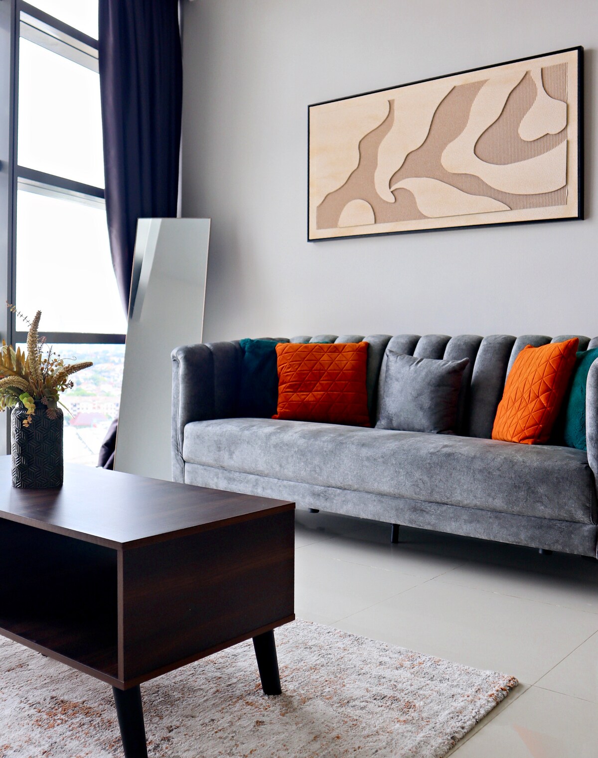 La teva escapada tranquil·la de la vida a la ciutat. Gaudeix d’un allotjament dissenyat amb molta cura que combina un estil modern amb una comoditat acollidora. Totalment equipat amb serveis per fer que la teva estada sigui senzilla, és ideal per a escapades curtes o estades més llargues. ✔ 2 dormitoris còmodes ✔ Televisor intel·ligent i altaveu ✔ 2 balcons ✔ Purificador d'aigua Coway (opció d'aigua calenta, freda i a temperatura ambient) Purificador d'✔aire per a un aire net i fresc ✔ 1 plaça d'aparcament designada ✔️ Wifi de 200 Mbps