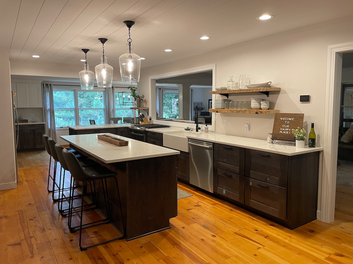Secluded modern design, fun, stylish, lakefront retreat carefully nestled in mature pines on 2.5 acres with 120 feet of easily accessible shoreline and large spa for year-round activities. For families, groups, and pets on a countryside neighborhood. Indoors and outdoors are connected with careful positioning of many large windows, sliding doors, patio and rooftop deck. For a closer look at the design, seasonal moments, and behind-the-scenes details, find us @StaysInColor.