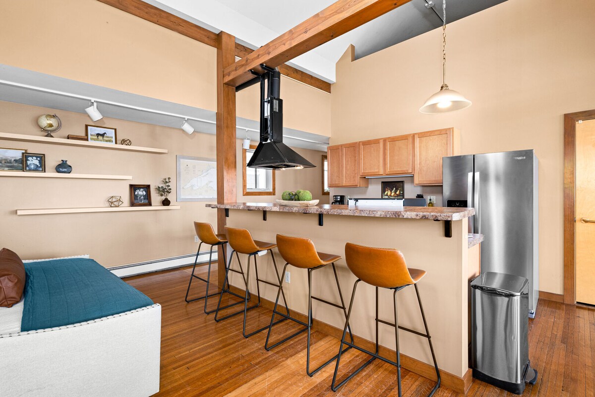 Enger Lofts Hotel is your adventure-town getaway in the heart of the Craft District of Duluth, Minnesota. Remodeled in 2020, this 1800s era warehouse features a modern kitchen, soaring ceilings, & large windows inside an airy, cozy studio.