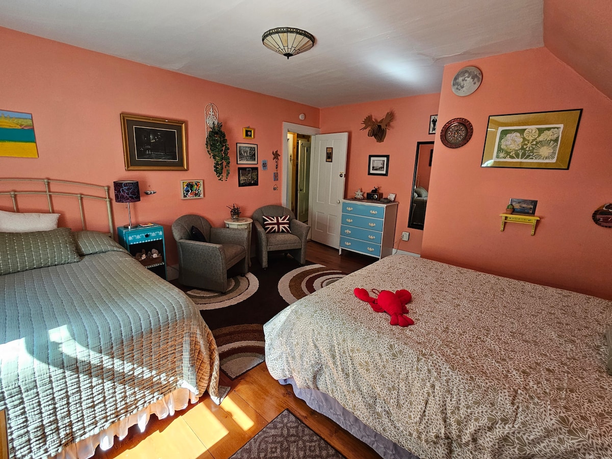 Les habitacions estan aïllades de la resta de la casa, a la segona planta, amb una entrada independent que s'obre a un vestíbul compartit i a la bugaderia. El dormitori és gran amb bany privat i queen. La sala d'estar/ llitera té dos llits individuals, nevera, torradora, microones. Tenim una ubicació meravellosa i boscosa a prop de les platges de Maine i de la Universitat de Nova Anglaterra. Estem a només uns minuts de Hills Beach i Fortunes Rocks Beach. Kennebunkport, la ciutat de Portland i la platja Old Orchard, estan a prop.