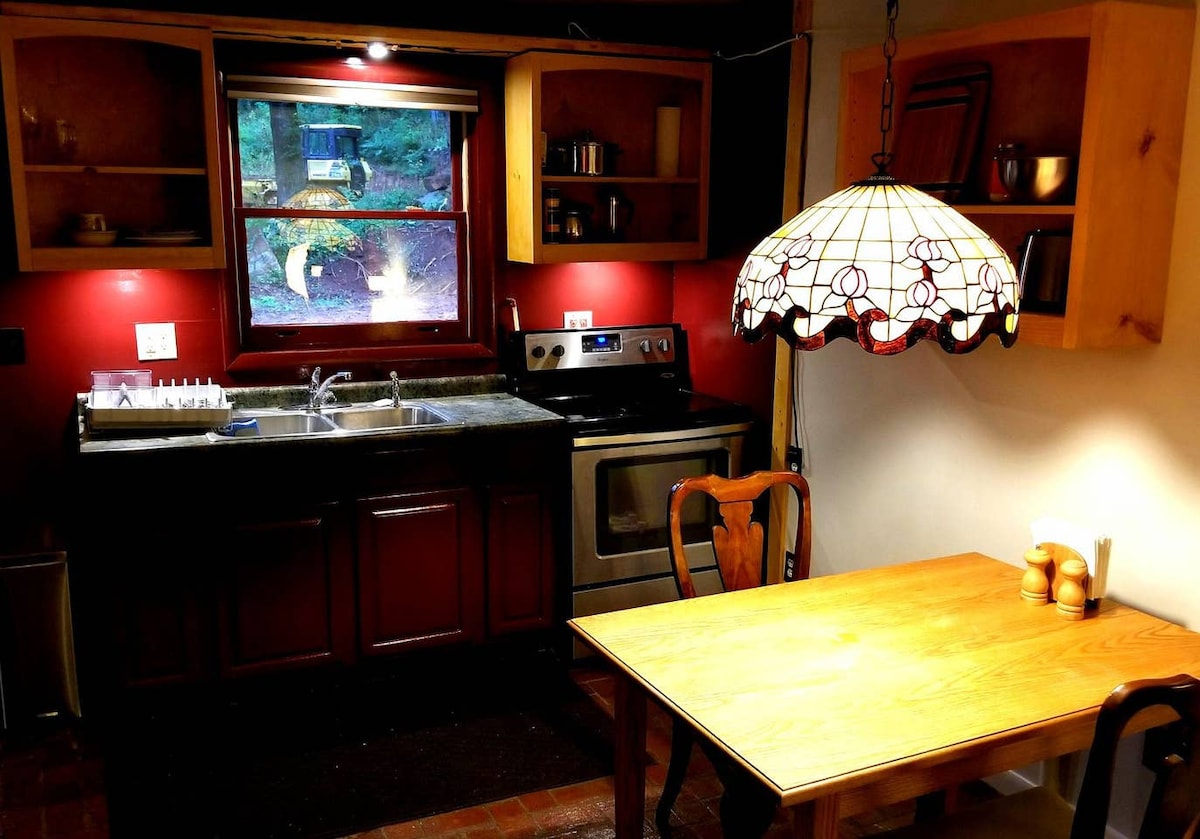Stargazer és el lloc perfecte per allunyar-te de tot! La tranquil·litat i la serenitat d'estar enclavat en un santuari d'ocells i fauna salvatge són molt bones per a la teva ànima. Observa la sortida del sol des d'una cadira de cistella penjada a 2700 peus d'alçada, o espera la sortida de la lluna i un brindis espectaculars amb vistes a les estrelles! Relaxa't a la sauna després d'un dia ple de senderisme i d'un àpat a l'aire lliure a la terrassa. Rosta s 'mores a la taula de foc de la coberta o sobre la foguera del pati lateral. Hi ha màgia a l'aire en aquest refugi al cim de la muntanya!