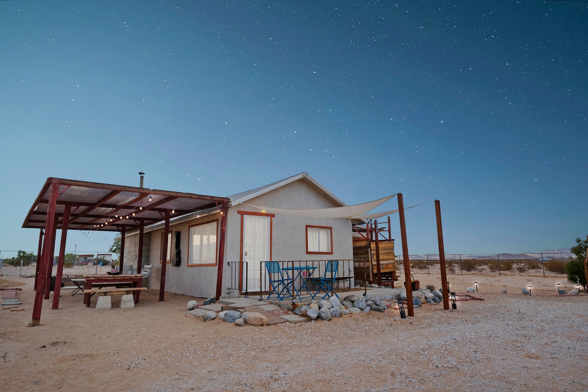 Enjoy Wonder Valley in this charming, original homestead on 5 private acres overlooking the beauty of the desert and Joshua Tree National Park. Secluded enough to enjoy the desert scenery and just 10 minutes away from the Joshua Tree National Park North Entrance. 7 Minutes to 29 Palms with a thriving scene of bars, shopping, necessities & restaurants Our sprawling 5 acres feature a cowboy pool & deck, outdoor dining and seating areas, hammock, game area, Stargazing Deck, & endless views!