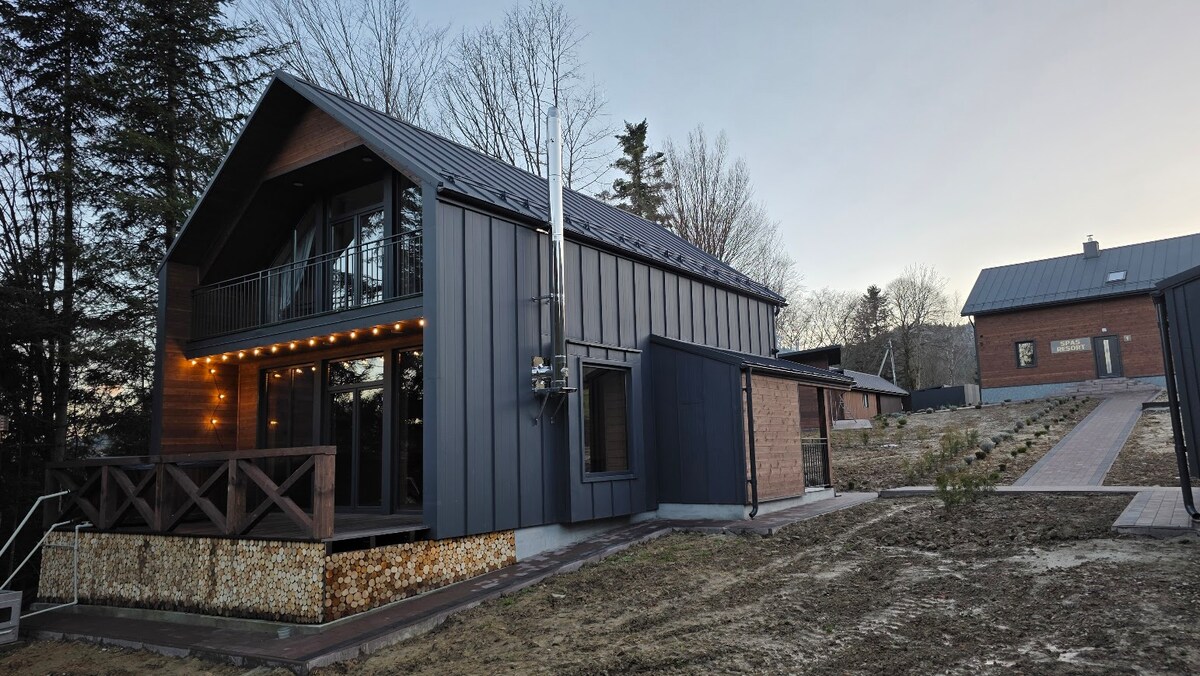 🏔️ Cottage №1 at Bilychi Lodge — comfort and the spirit of the Carpathians 🌲 A cozy riverside house with a kitchen, Wi-Fi, TV, and heating — perfect for any season. On-site you’ll find an event hall, BBQ area with gazebos, children’s playground, wood-fired hot tub, billiards, and ATV tours. Enjoy your morning coffee with mountain views, evenings by the fire 🔥, fresh air, and peaceful silence — the perfect place to unwind, recharge, and share warm, genuine moments 💛