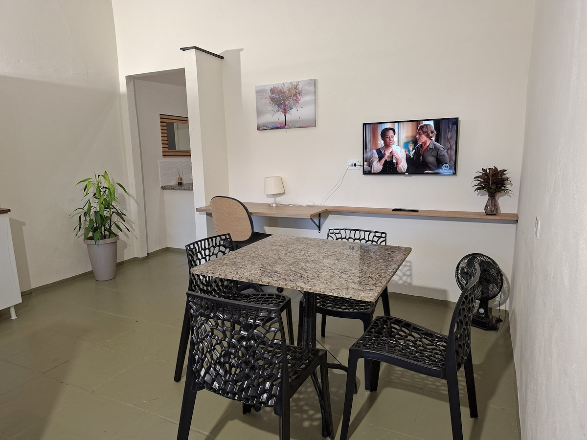 Pis nou amb una ubicació privilegiada (centre de la ciutat), sala d'estar i cuina combinada, 2 dormitoris, un doble i un individual, amb aire condicionat, zona de servei (pica), un lavabo a la planta baixa i un bany a la planta superior.
