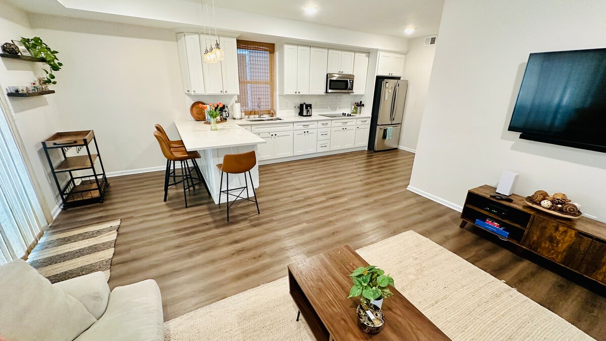 Descobreix el luxe modern a pocs minuts de Manhattan en aquest apartament de 3 dormitoris i 2 banys acabat de renovar amb aparcament a l'entrada. Dos dormitoris amb llits «king size» (un amb bany privat amb banyera d'hidromassatge) i una habitació amb llit «queen size», tots amb televisors intel·ligents, persianes opaques i llençols nets. Relaxa't en un sofà de cuir per a una nit de pel·lícules en el televisor 4K de 65 polzades, cuina a la cuina preparada per a xefs amb nevera de porta francesa, freidora d'aire Ninja i un conjunt complet d'aparells d'acer inoxidable, i després surt a l'exterior per expressar el trànsit per a un viatge de 45 minuts a Midtown Manhattan.