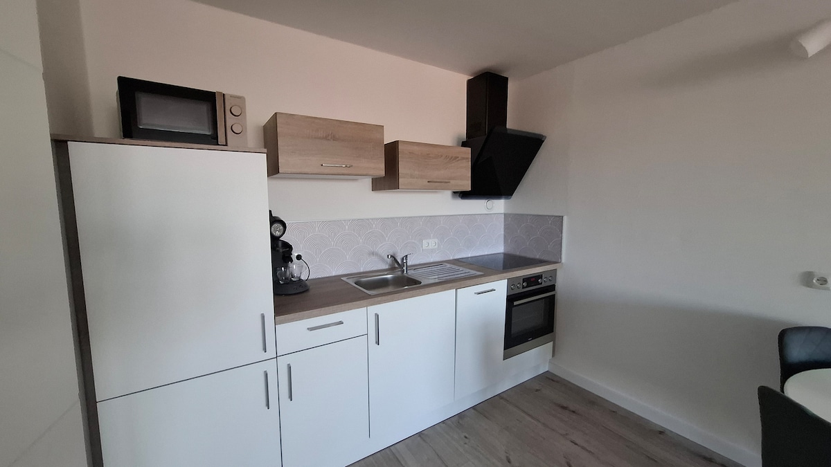 L'apartament de 54 m² està situat al centre, és acollidor i rústic i té un gran balcó orientat al sud, dos televisors de pantalla plana a la sala d'estar i al dormitori, un sofà llit, wifi ràpid i una plaça d'aparcament subterrani (ambdós gratuïts). La cuina està totalment equipada, inclosa. Microones, cafetera (Tchibo Cafissimo, per exemple) Aldi), nevera i molt més. S'ofereixen tovalloles, llençols i assecador de cabells. També hi ha una piscina compartida gratuïta i una sauna (1 € per 20 minuts).