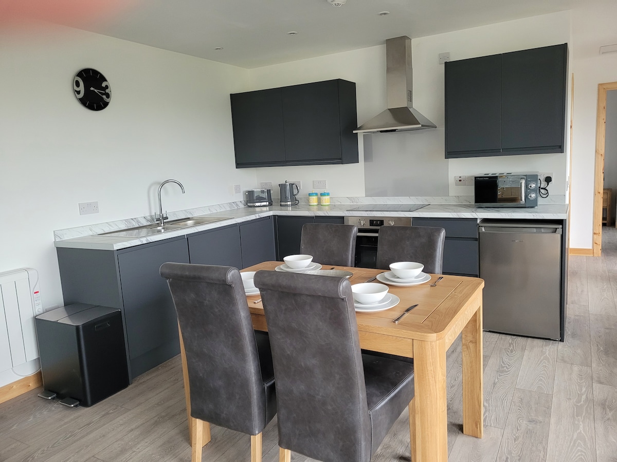 Desperta't amb unes vistes impressionants i ininterrompudes del Quiraing des de la nostra caseta moderna, lluminosa i acollidora, situada en un racó tranquil de l'illa de Skye. Gaudeix d'una cuina totalment equipada amb zona de menjador, una sala d'estar acollidora que dona a una terrassa privada i un dormitori amb llit «king-size» i bany privat amb dutxa d'alta pressió. Perfecte per a parelles que busquen una escapada tranquil·la, un entorn màgic i un lloc on descansar per explorar l'illa de Skye.