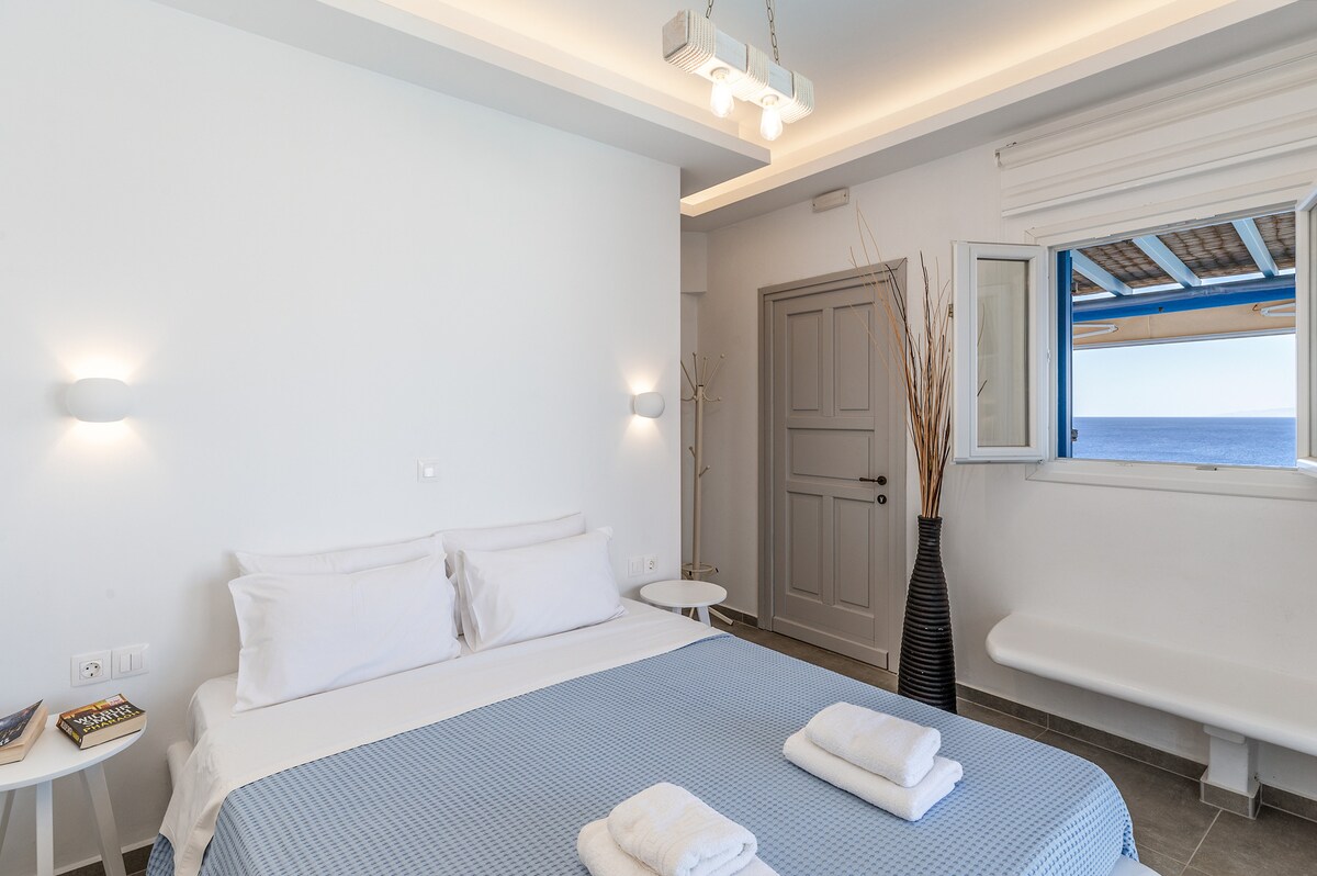 Suite de pedra a només 10 metres de la platja. Finestres molt grans per gaudir de la vista al mar, pèrgola exterior amb sala d'estar i taula. Cuina totalment equipada i bany / dutxa còmoda. En pujar les escales de fusta arribes al dormitori des d'on pots gaudir millor de la vista del mar. La forta presència de la fusta, combinada amb el llit i el sofà integrats, et recorda les cases senyorials de les Cíclades.