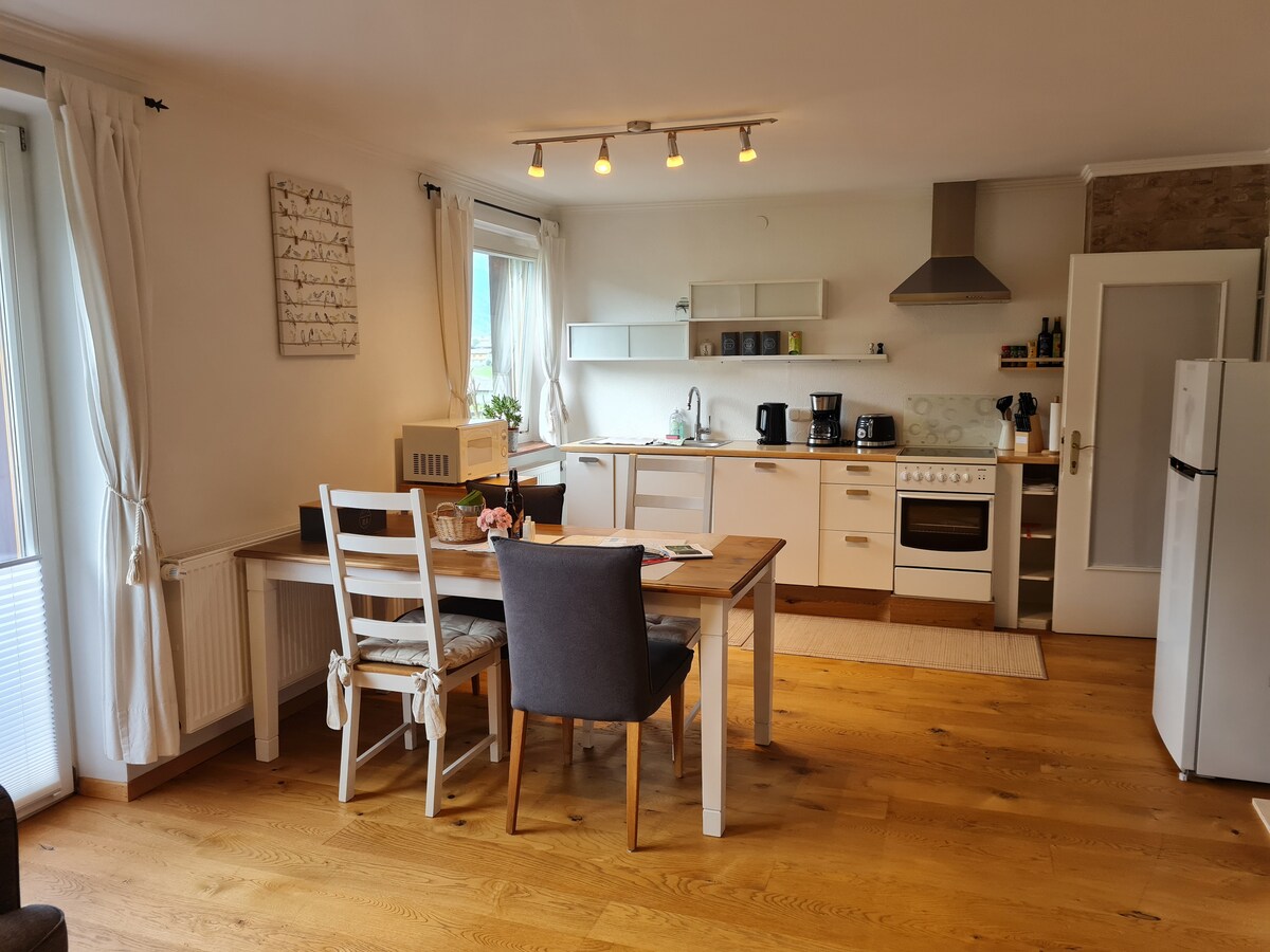 El pis tranquil i assolellat del xalet familiar Mittersill a Oberpinzgau et permet gaudir d'una experiència a la natura, relaxar-te i relaxar-te alpí, així com poder esportiu. Els Alps de Kitzbühel i el Felbertauern com a zona de recorregut d'esquí i esquí en ment, sempre al costat del Salzachtal i gaudeix del Parc Nacional Hohe Tauern com a reforçament, complementat, entre altres coses, Therme Kaprun, piscina a l'aire lliure i camp de golf Mittersill, cascades Krimmler, Zell am See i molt més!