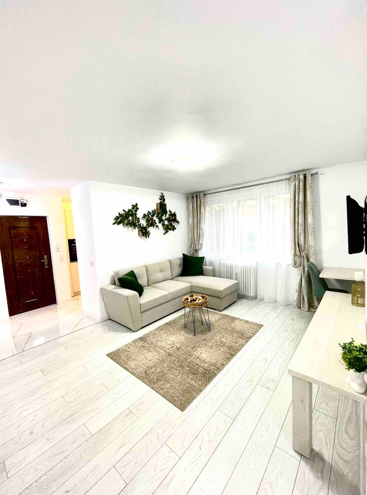 L'apartament té un disseny modern i acollidor en colors càlids especialment dissenyat per oferir una sensació de comoditat i tranquil·litat. Es troba a la zona ultra cèntrica, el parc central es troba a la sortida del bloc. Als voltants hi ha nombroses institucions, com ara la Prefectura, l'Oficina del Poon, el Jutjat, la Biblioteca Central i Dom Polski, les branques dels bancs existents a Romania, el Museu d'Història, el Museu de la Natura, el Monestir de Sant Joan (tots de 2-5 minuts a peu).